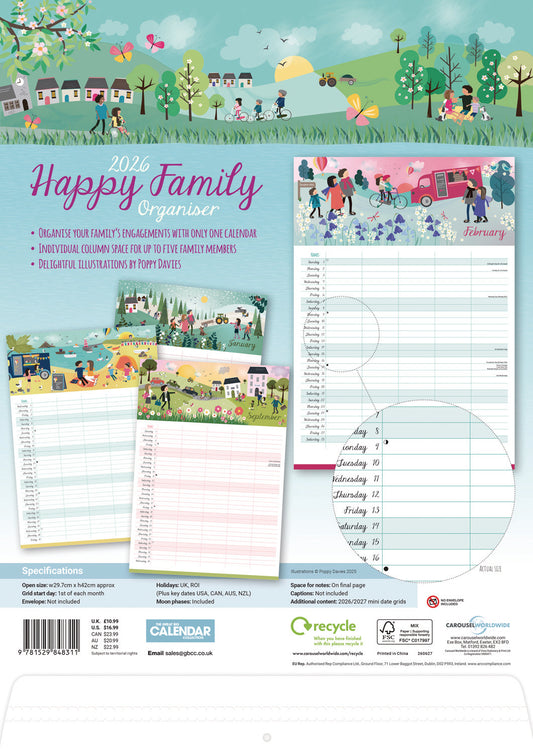 Happy Family Planner A3 Calendar 2026