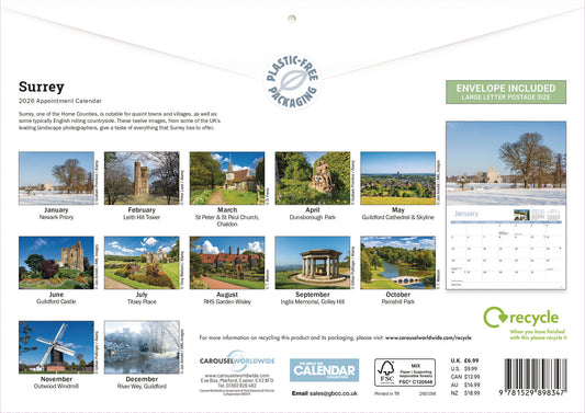 Surrey A4 Calendar 2026Regular price £6.99Regular priceUnit price / per£6.99Sale price £6.99