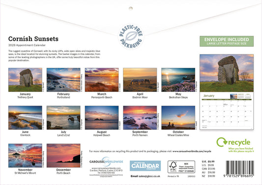 Cornish Sunsets A4 Calendar 2026Regular price £6.99Regular priceUnit price / per£6.99Sale price £6.99