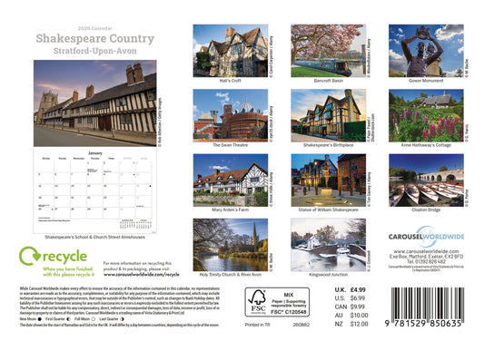 Shakespeare Country, Stratford-upon-avon A5 Calendar 2026