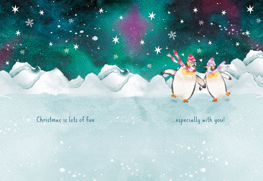 Christmas Card (Single) - Wife - Penguins & Night Sky