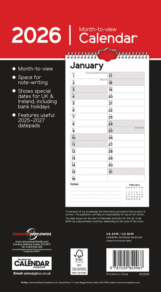 Essential MTV Stubby Slim (R&B) Calendar 2026