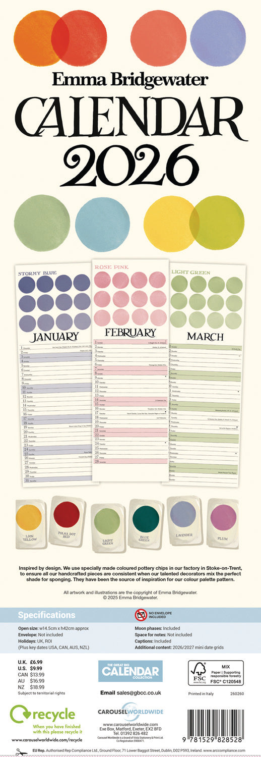 Emma Bridgewater, Colour Palette Slim Calendar 2026