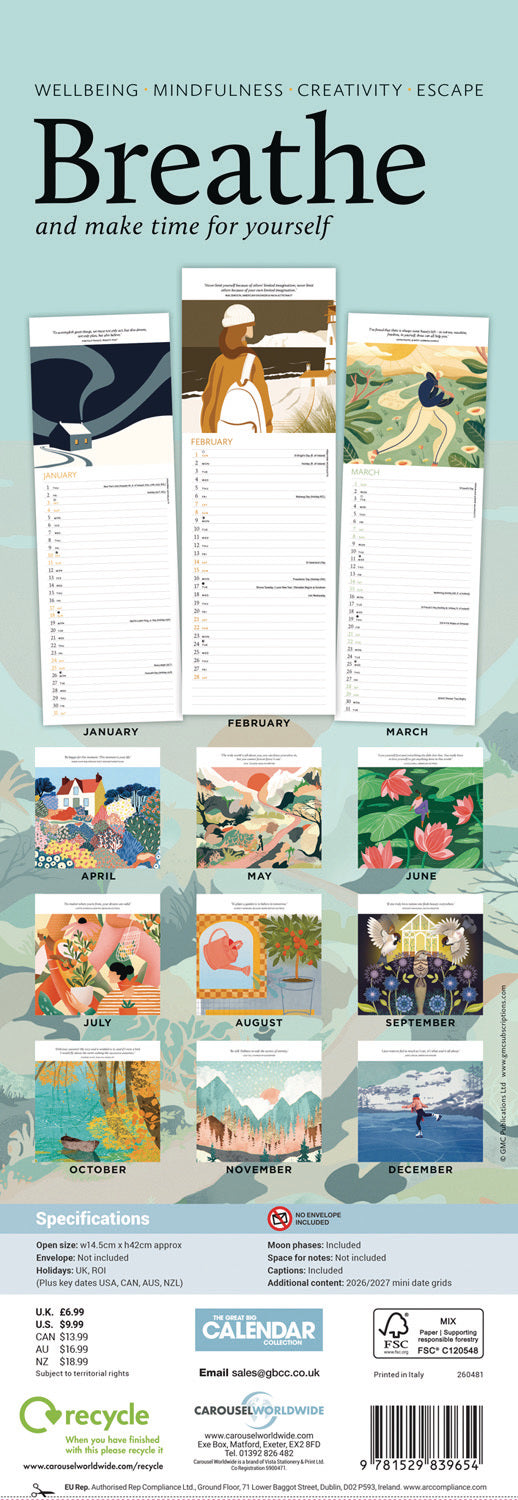 Breathe Slim Calendar 2026