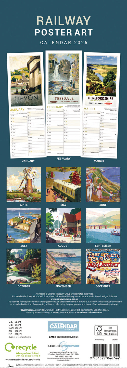 Railway Poster Art NRM Slim Calendar 2026