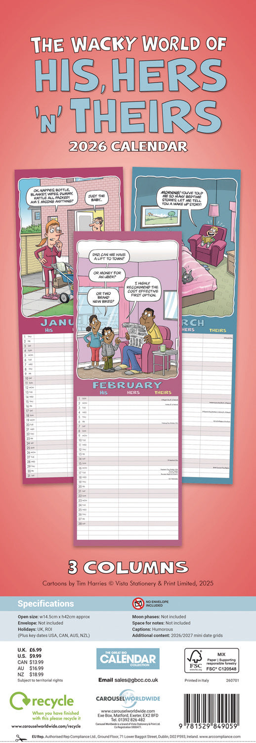Wacky World of His, Hers and Theirs Planner Slim Calendar 2026