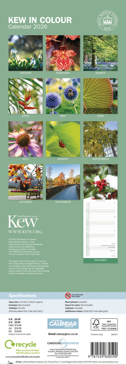 Royal Botanic Gardens Kew in Colour Slim Calendar 2026