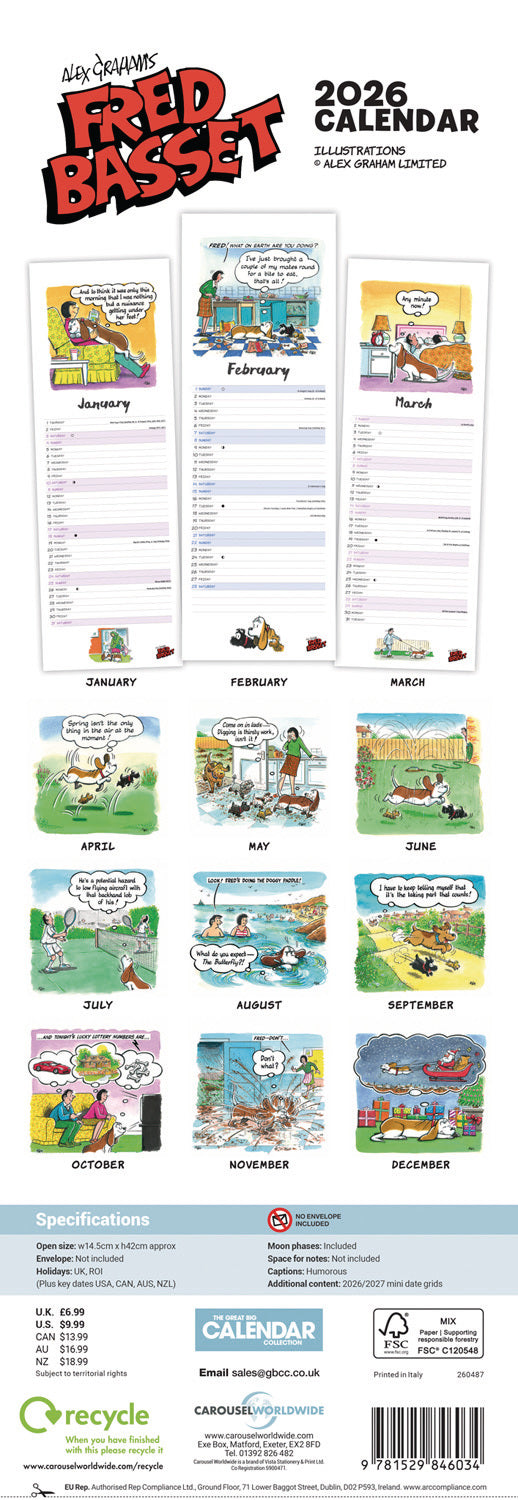 Coming SoonFred Basset slim calendar 2026