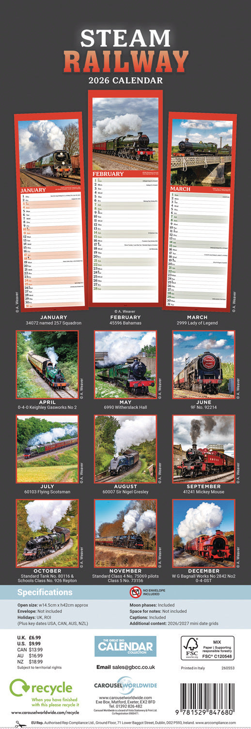 Steam Railway Slim Calendar 2026
