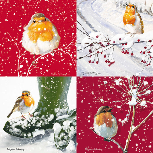 Assorted Christmas Cards - Robins in Snowfall