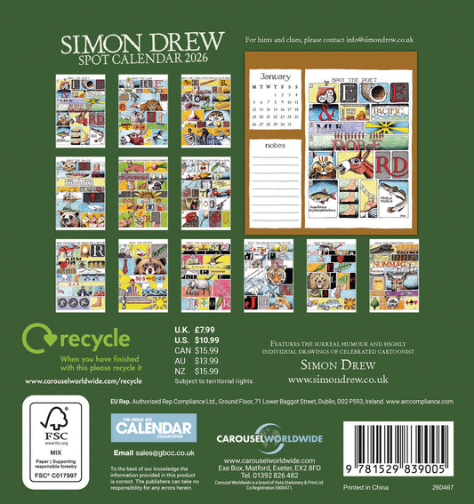 Simon Drew Easel Calendar 2026