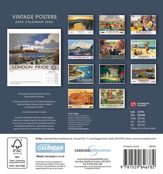 Vintage Posters, NRM Easel Calendar 2026