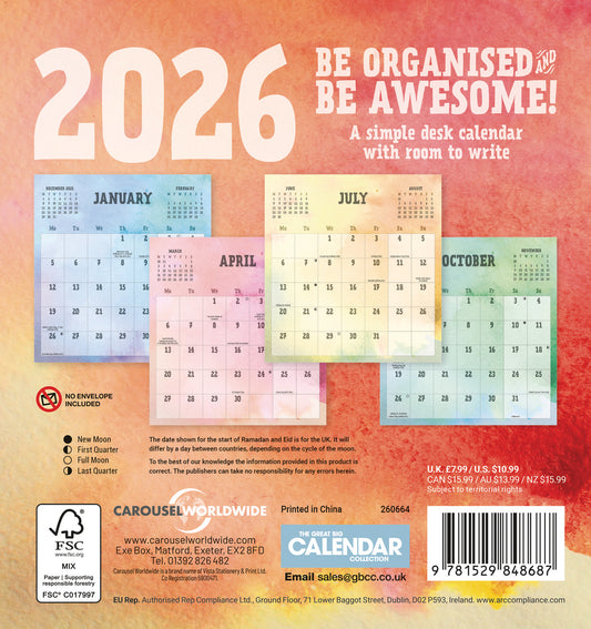 Be Organised and Be Awesome Easel Calendar 2026