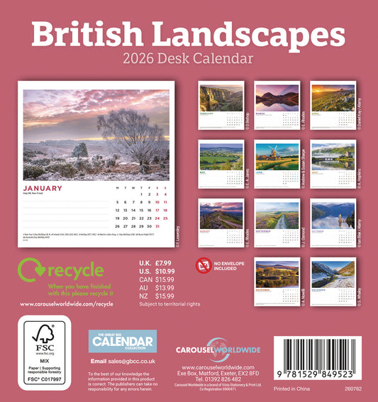 British Landscapes Easel Calendar 2026