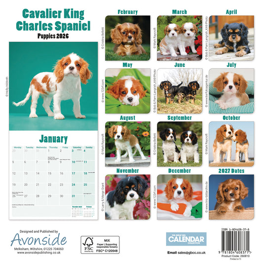 Cavalier King Charles Spaniel Puppies Mini Calendar 2026