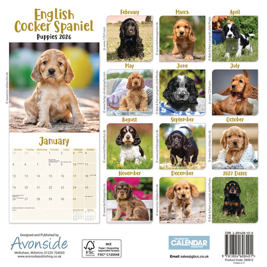 English Cocker Spaniel Puppies Mini Calendar 2026