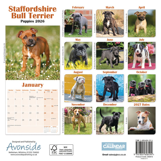 Staffordshire Bull Terrier Puppies Mini Calendar 2026