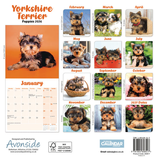Yorkshire Terrier Puppies Mini Calendar 2026