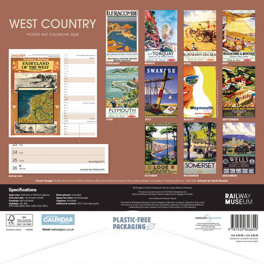 West Country Poster Art NRM Wiro Wall Calendar 2026Regular price £10.99Regular priceUnit price / per£10.99Sale price £10.99