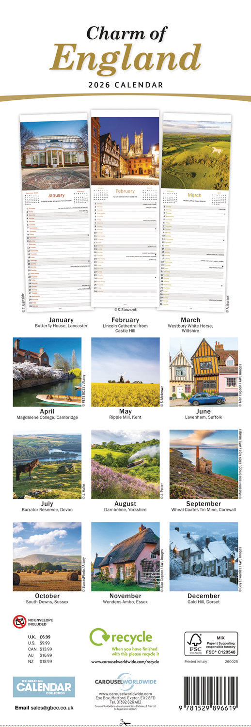 Charm of England Slim Calendar 2026Regular price £6.99Regular priceUnit price / per£6.99Sale price £6.99