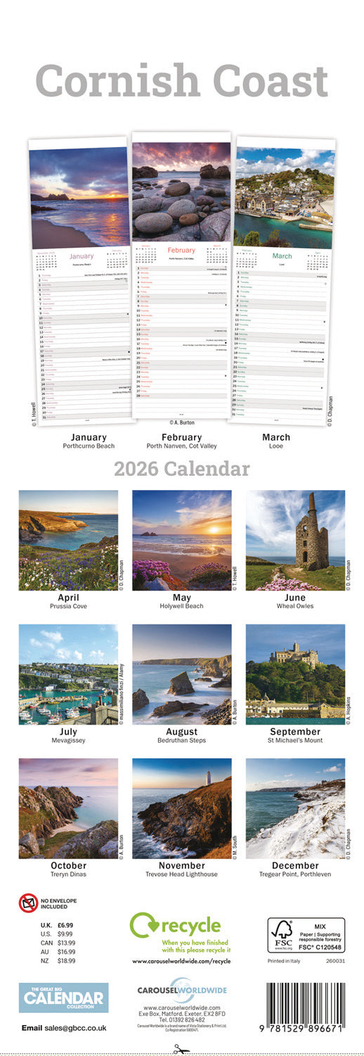 Cornish Coast Slim Calendar 2026Regular price £6.99Regular priceUnit price / per£6.99Sale price £6.99