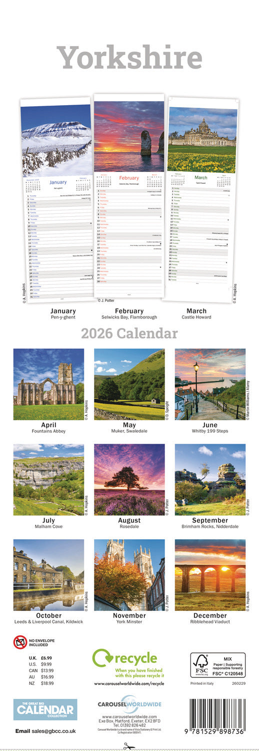 Yorkshire Slim Calendar 2026Regular price £6.99Regular priceUnit price / per£6.99Sale price £6.99