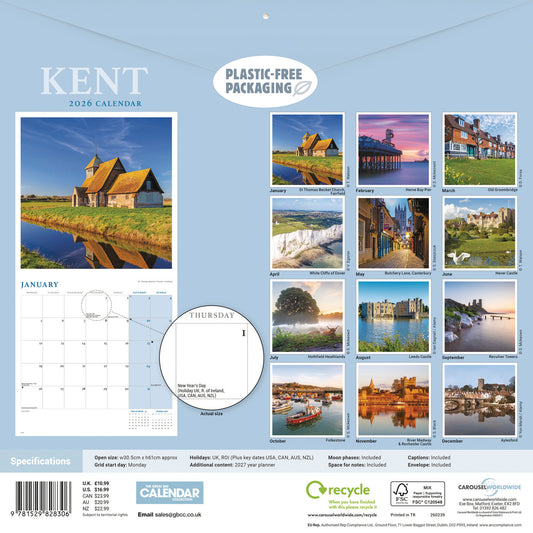 Kent Wall Calendar 2026Regular price £10.99Regular priceUnit price / per£10.99Sale price £10.99