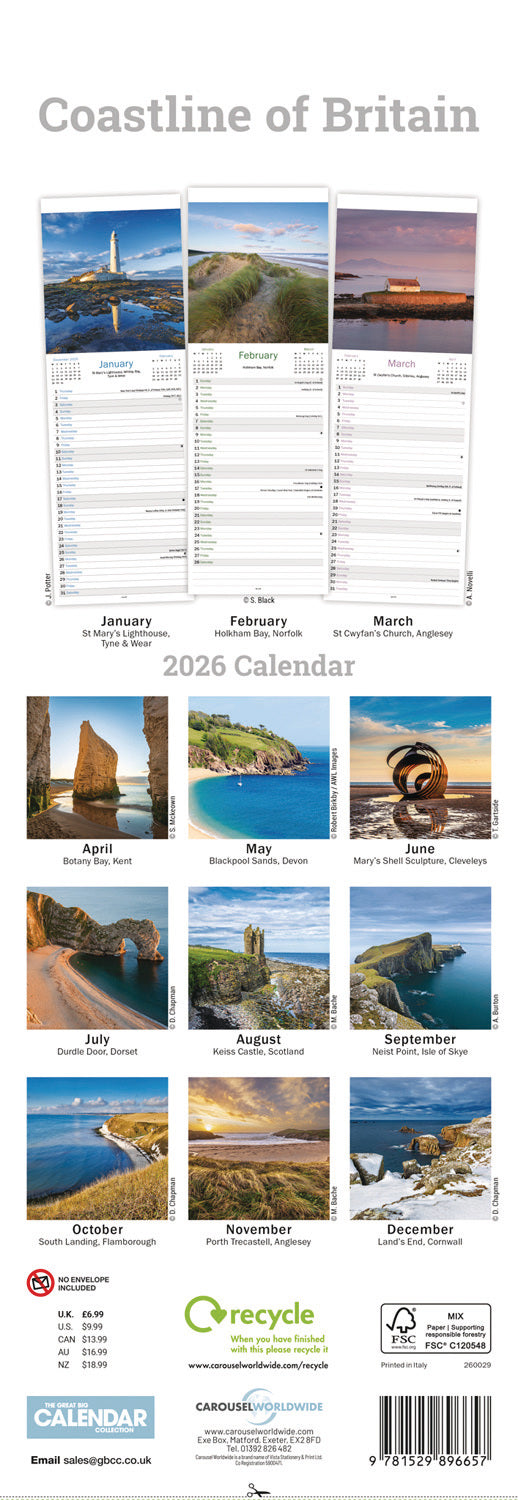 Our best-selling slim calendars fit neatly in narrow spaces with their list format under a new image for each month.