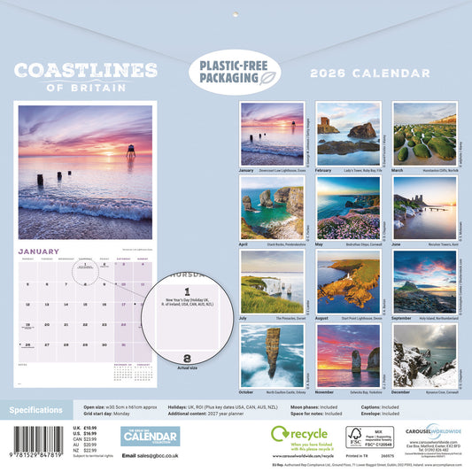 Coastlines of Britain Wall Calendar 2026