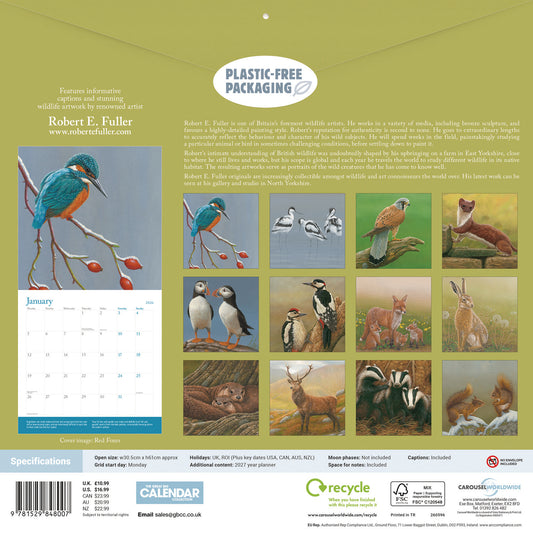 British Wildlife in Art by Robert Fuller Wall Calendar 2026