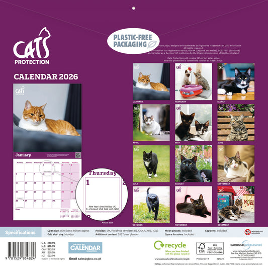 Cats Protection Wall Calendar 2026