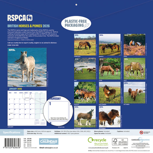 RSPCA British Horses & Ponies Wall Calendar 2026Regular price £10.99Regular priceUnit price / per£10.99Sale price £10.99