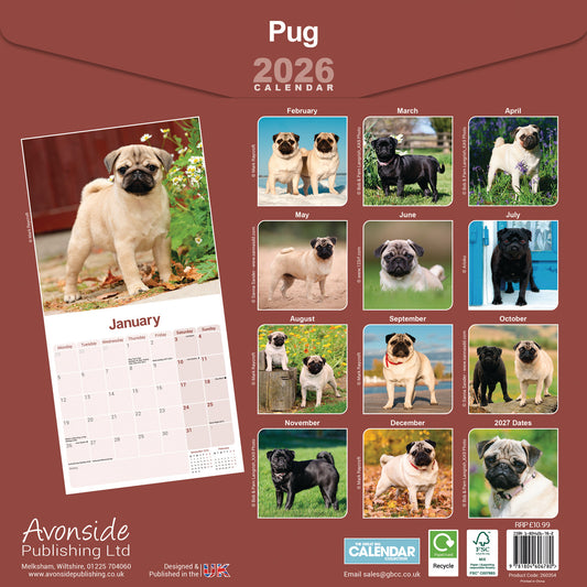 Pug Wall Calendar 2026Regular price £10.99Regular priceUnit price / per£10.99Sale price £10.99