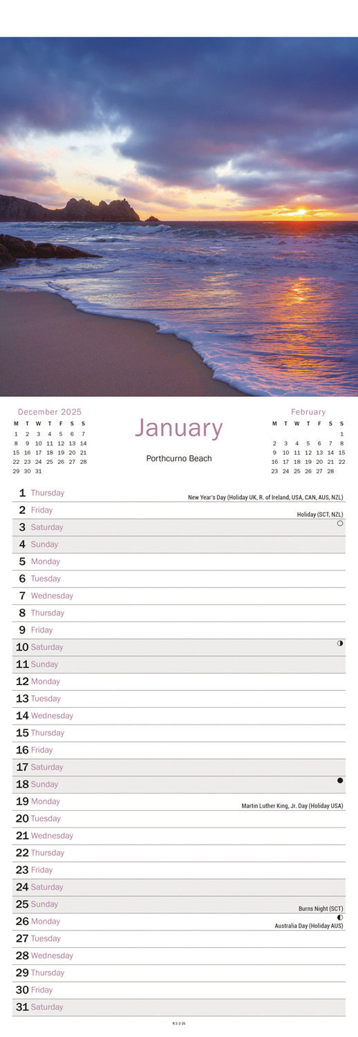 Our best-selling slim calendar fits neatly in narrow spaces with its list format under a new image for each month.