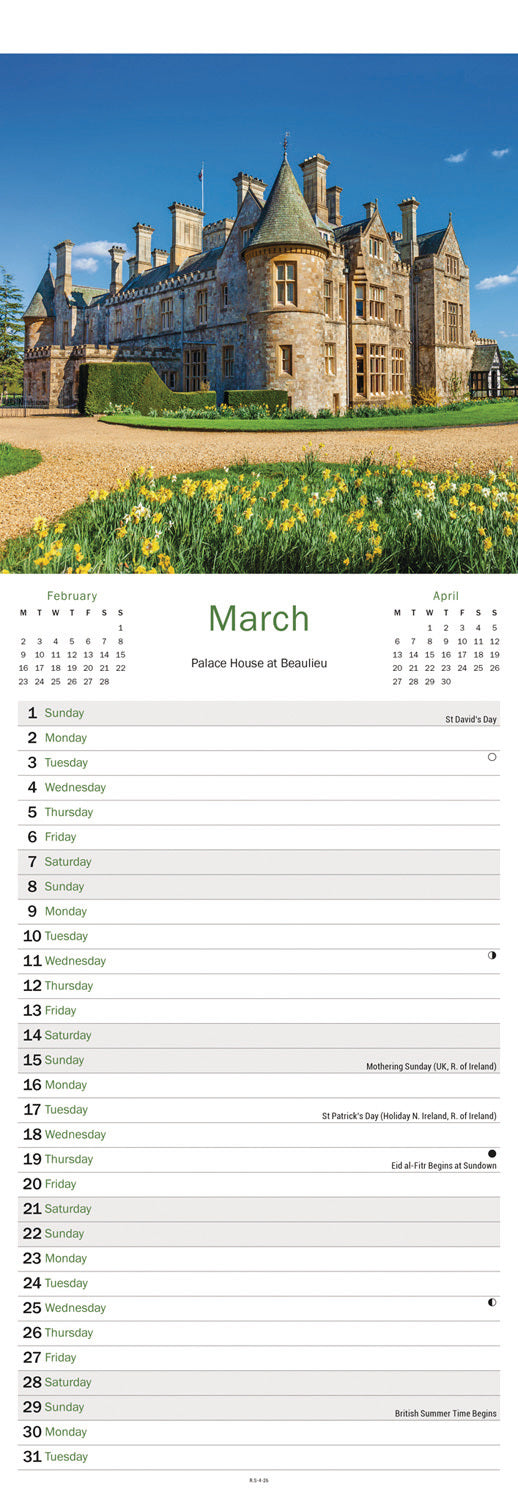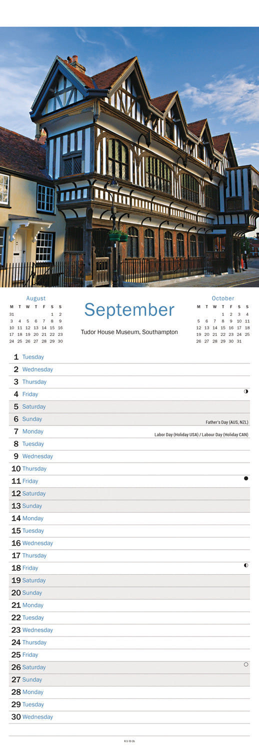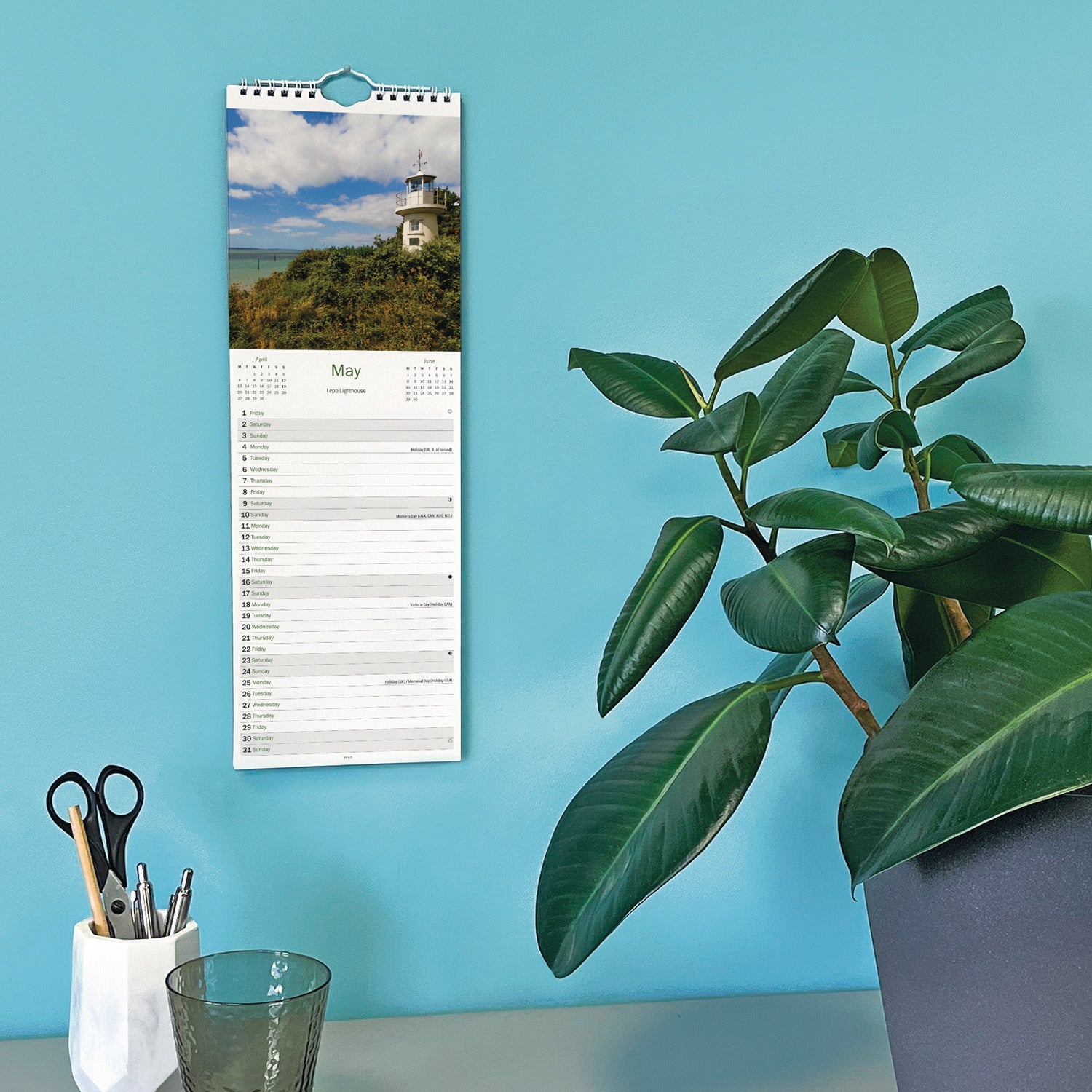 Our best-selling slim calendar fits neatly in narrow spaces with its list format under a new image for each month.
