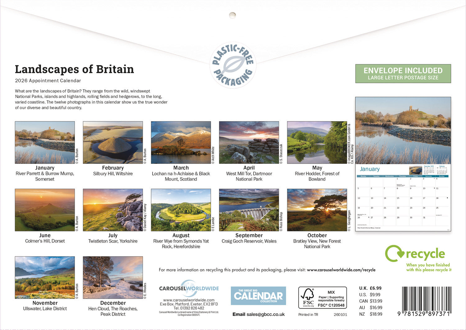 Landscapes of Britain A4 Calendar 2026