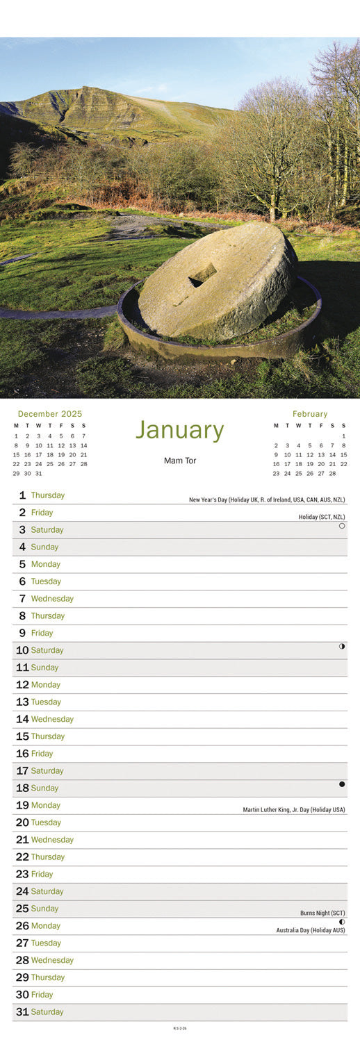Our best-selling slim calendar fits neatly in narrow spaces with its list format under a new image for each month.
