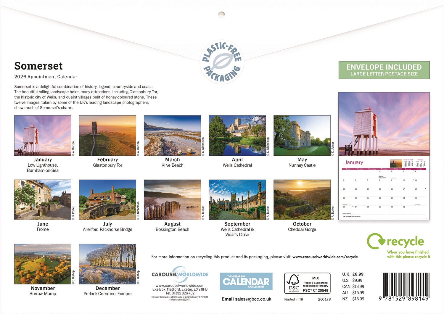 Somerset A4 Calendar 2026