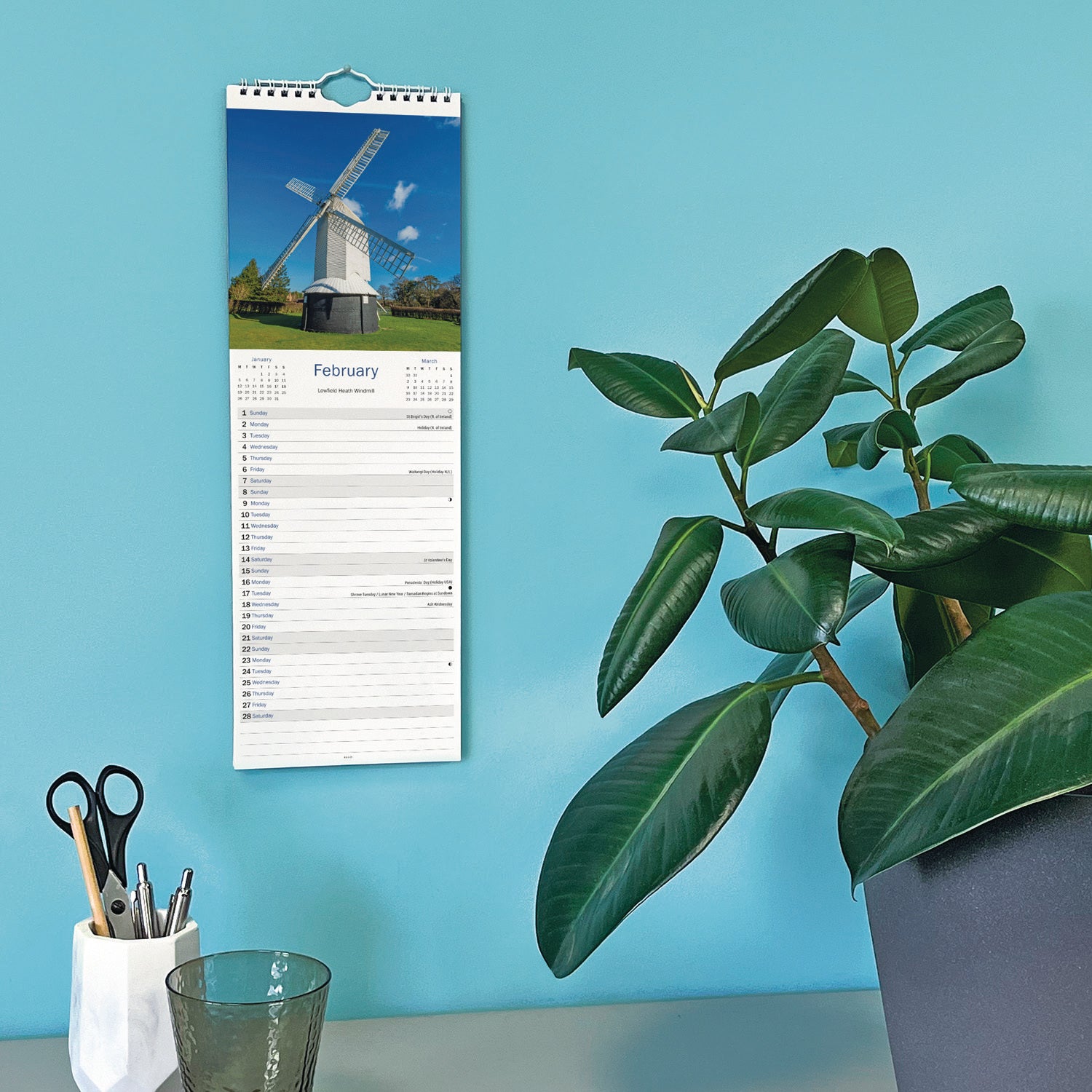 Our best-selling slim calendar fits neatly in narrow spaces with its list format under a new image for each month.