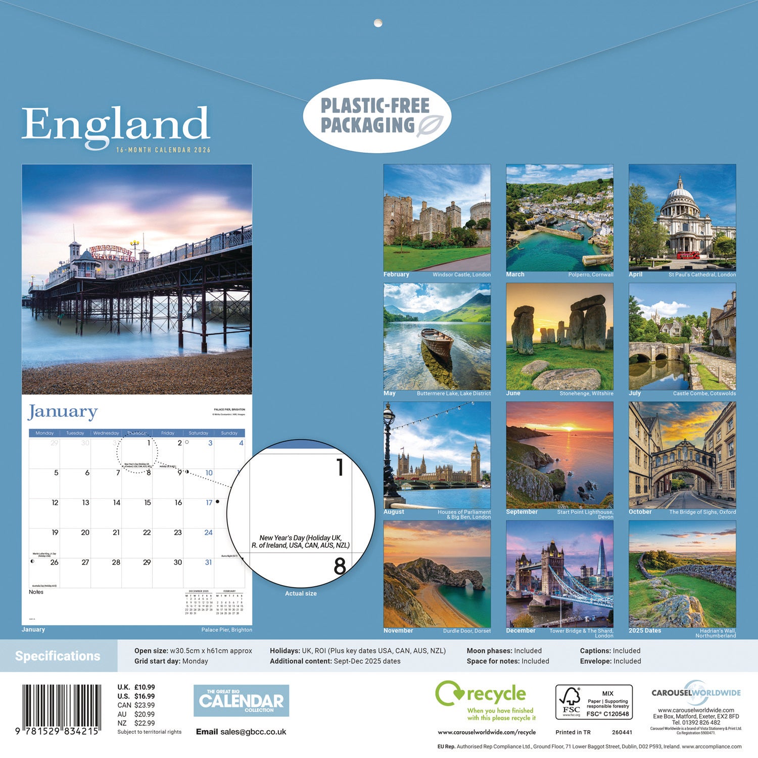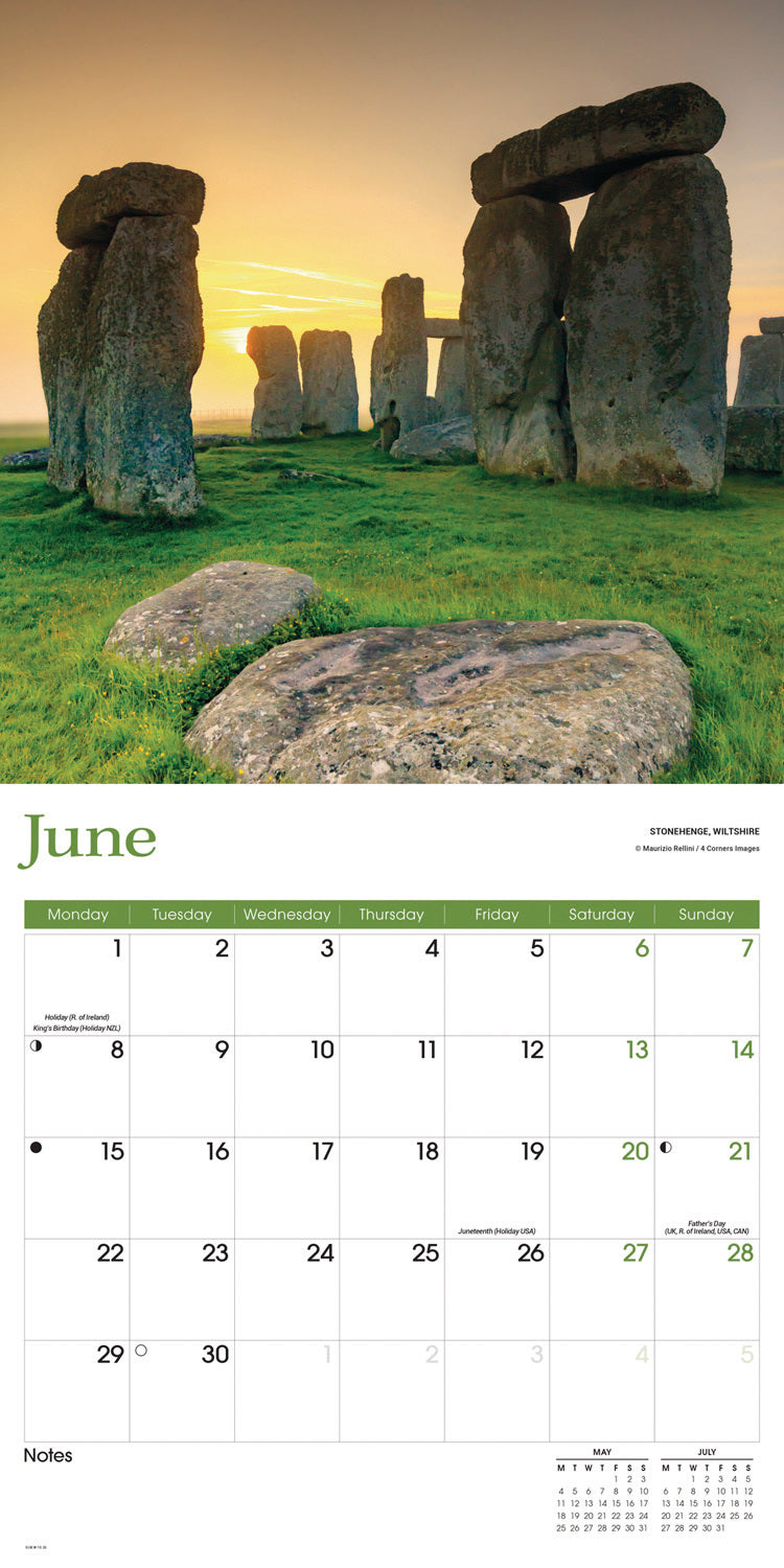 England Wall Calendar 2026
