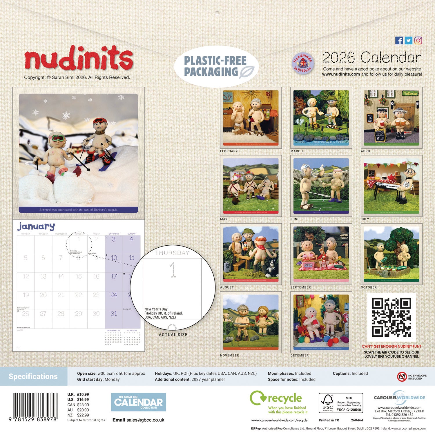 Nudinits Wall Calendar 2026