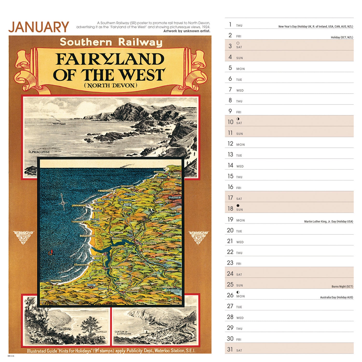 West Country Poster Art NRM Wiro Wall Calendar 2026