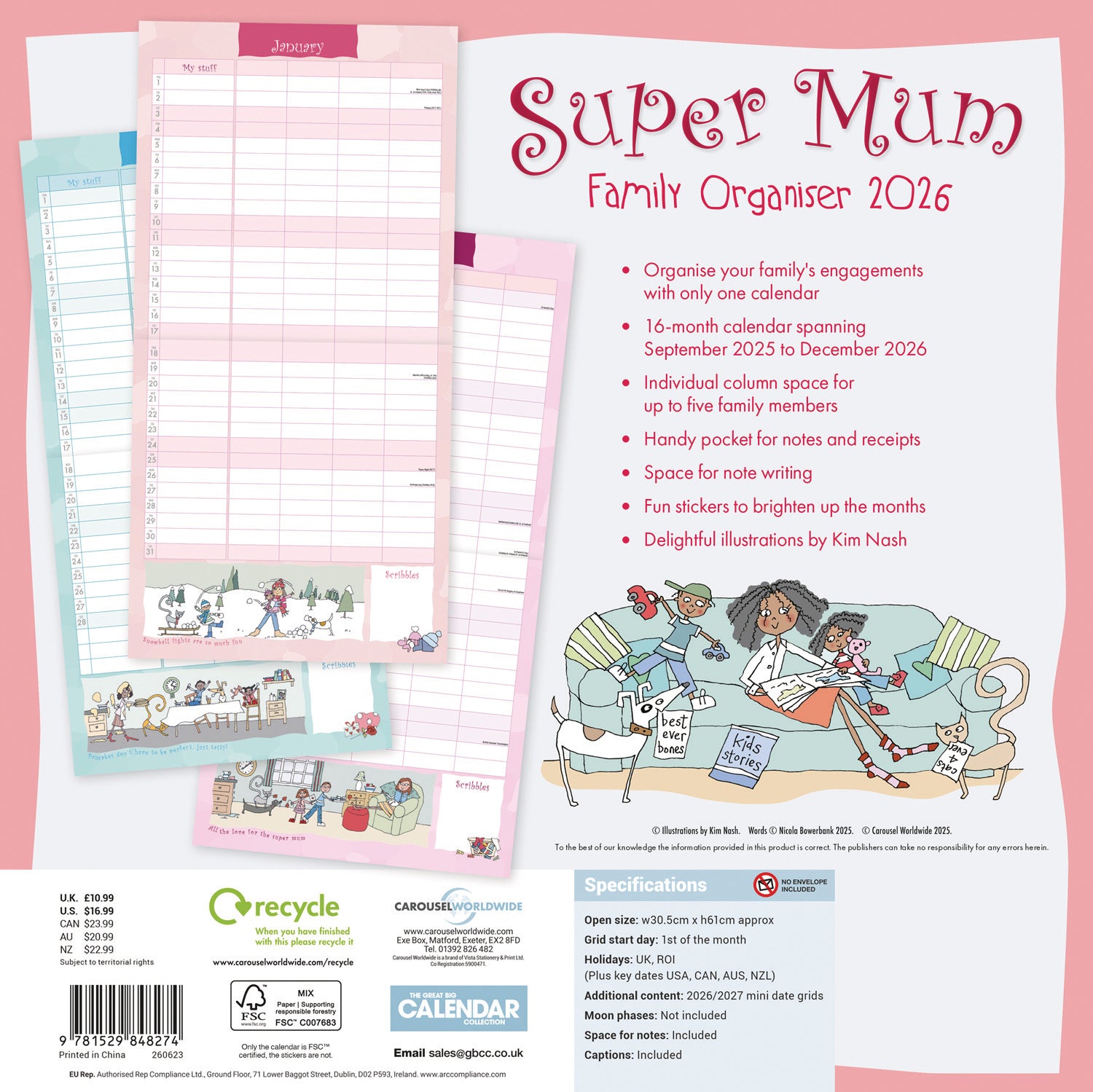 Super Mum, Kim Nash Planner Wall Calendar 2026