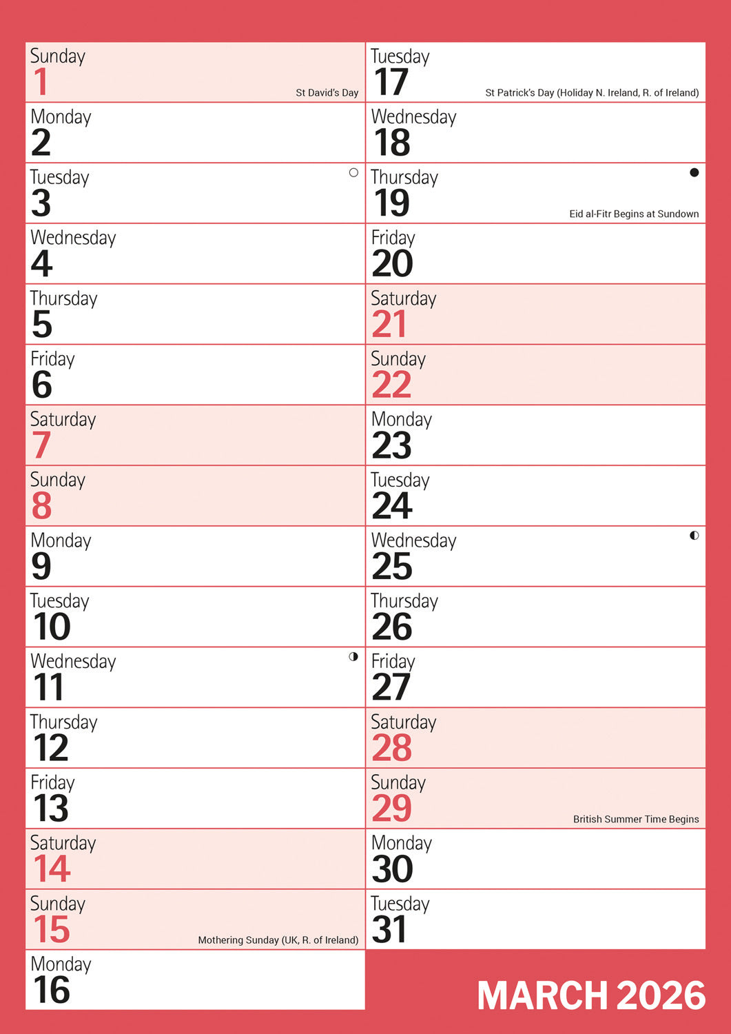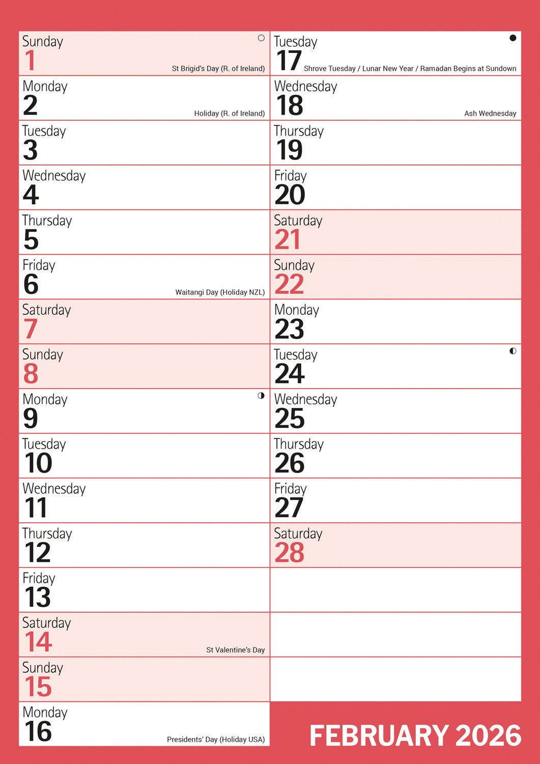 Red & Black Monthly Engagement Portrait A4 Calendar 2026