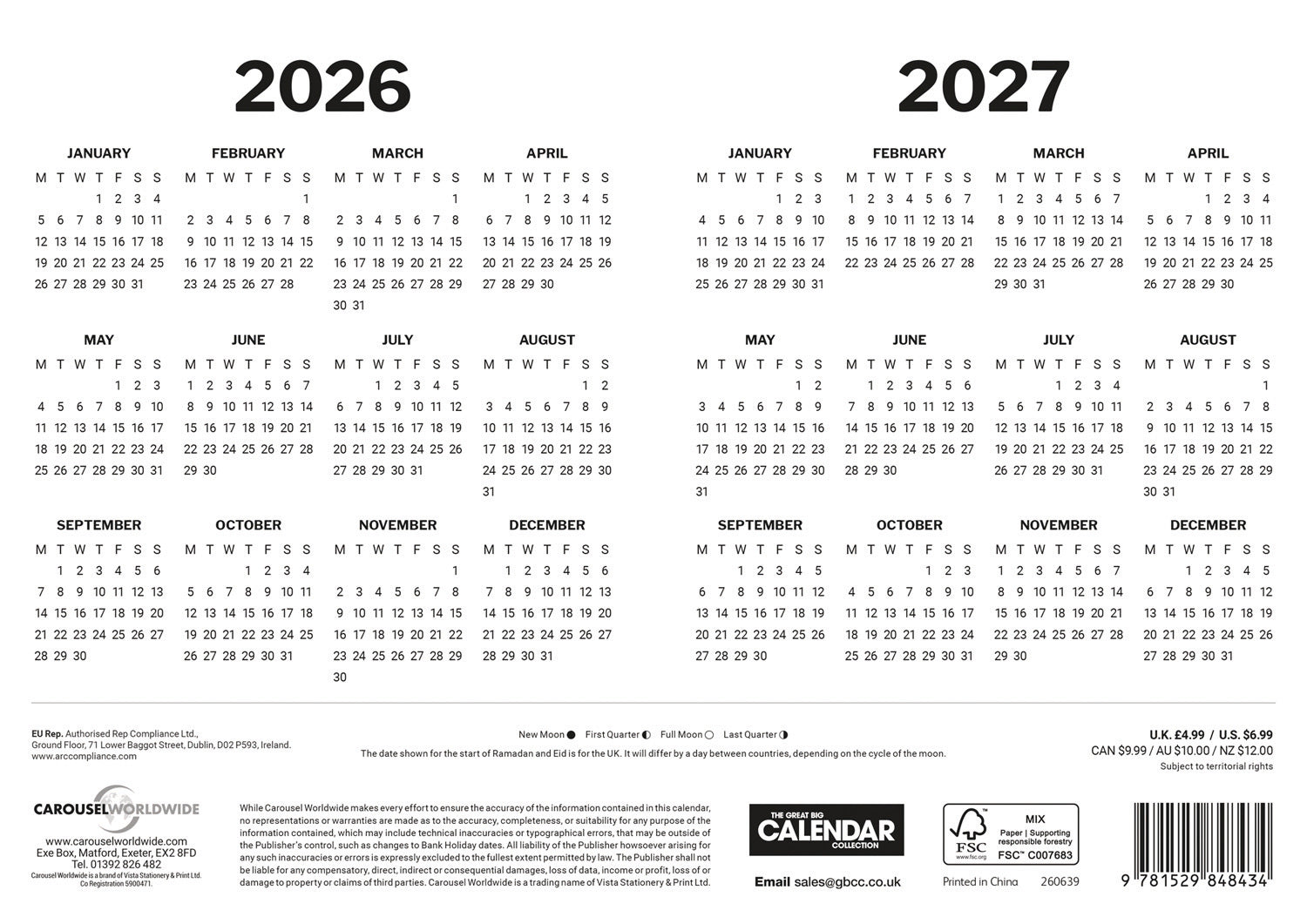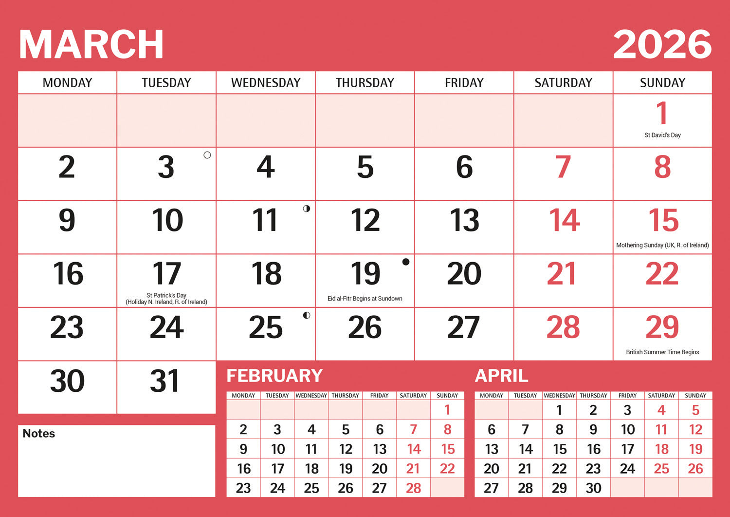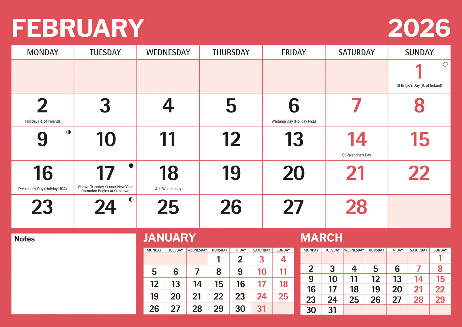 Red & Black Large Boldtype Landscape A4 Calendar 2026