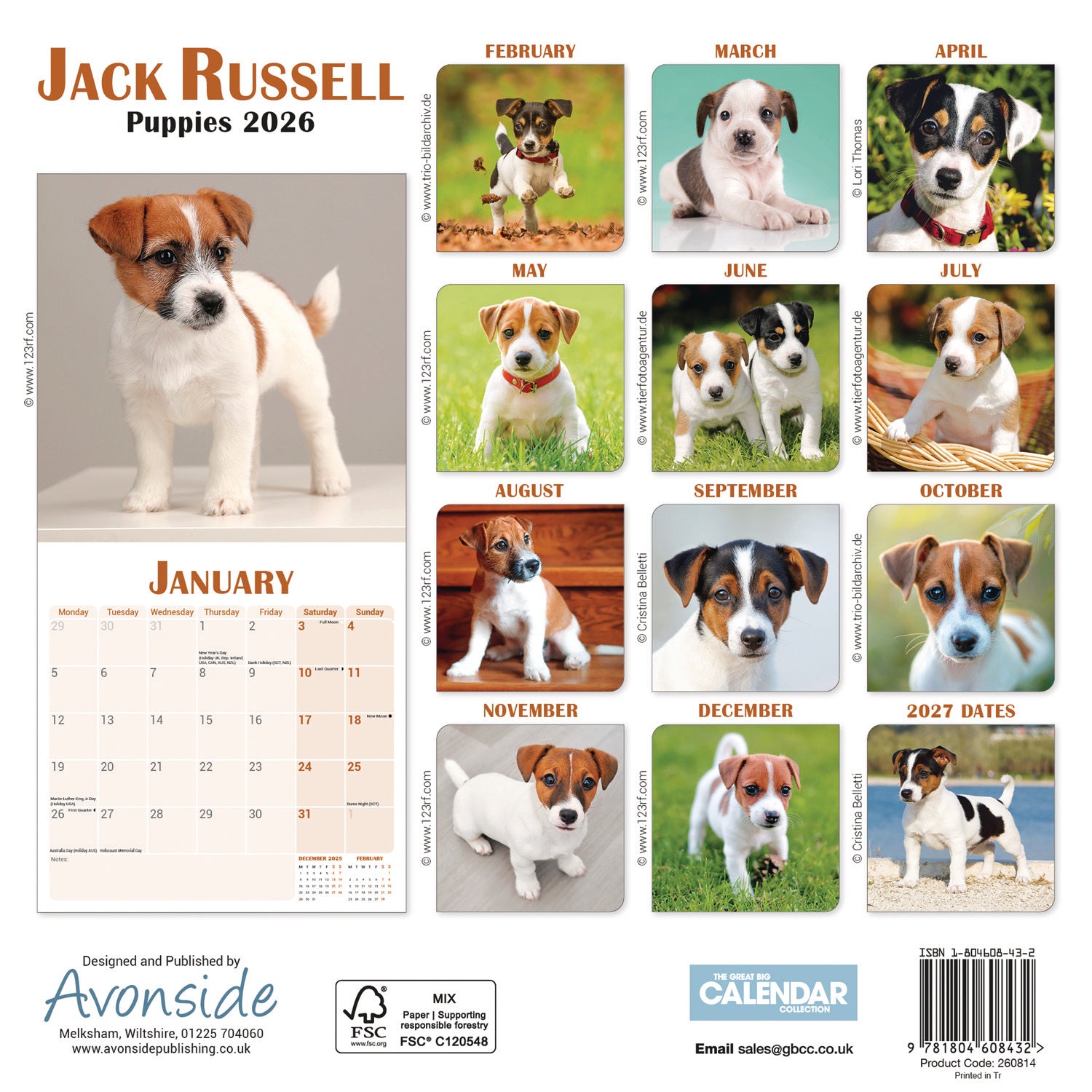 Jack Russell Puppies Mini Calendar 2026