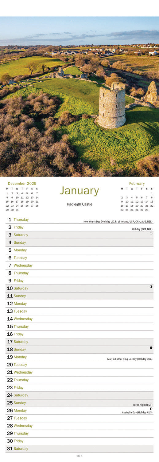 Our best-selling slim calendar fits neatly in narrow spaces with its list format under a new image for each month.
