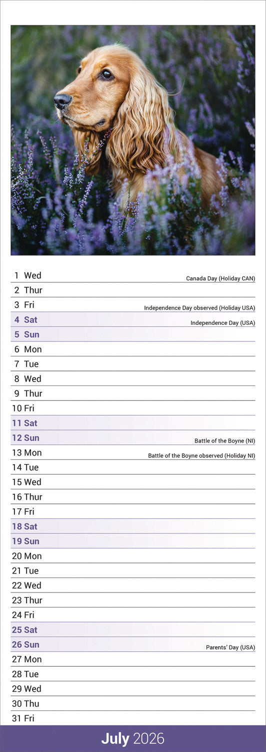 English Cocker Spaniel slim calendar 2026