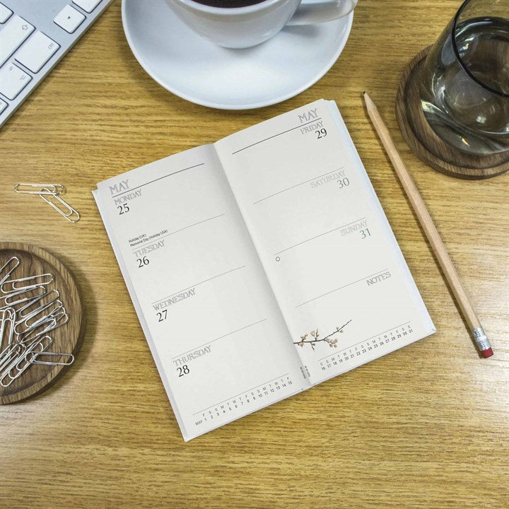 This diary is the perfect companion for keeping on top of a busy lifestyle. With ample space for writing down reminders, lists, or any details of your day, this portable diary is the ideal solution for staying organised on the go.