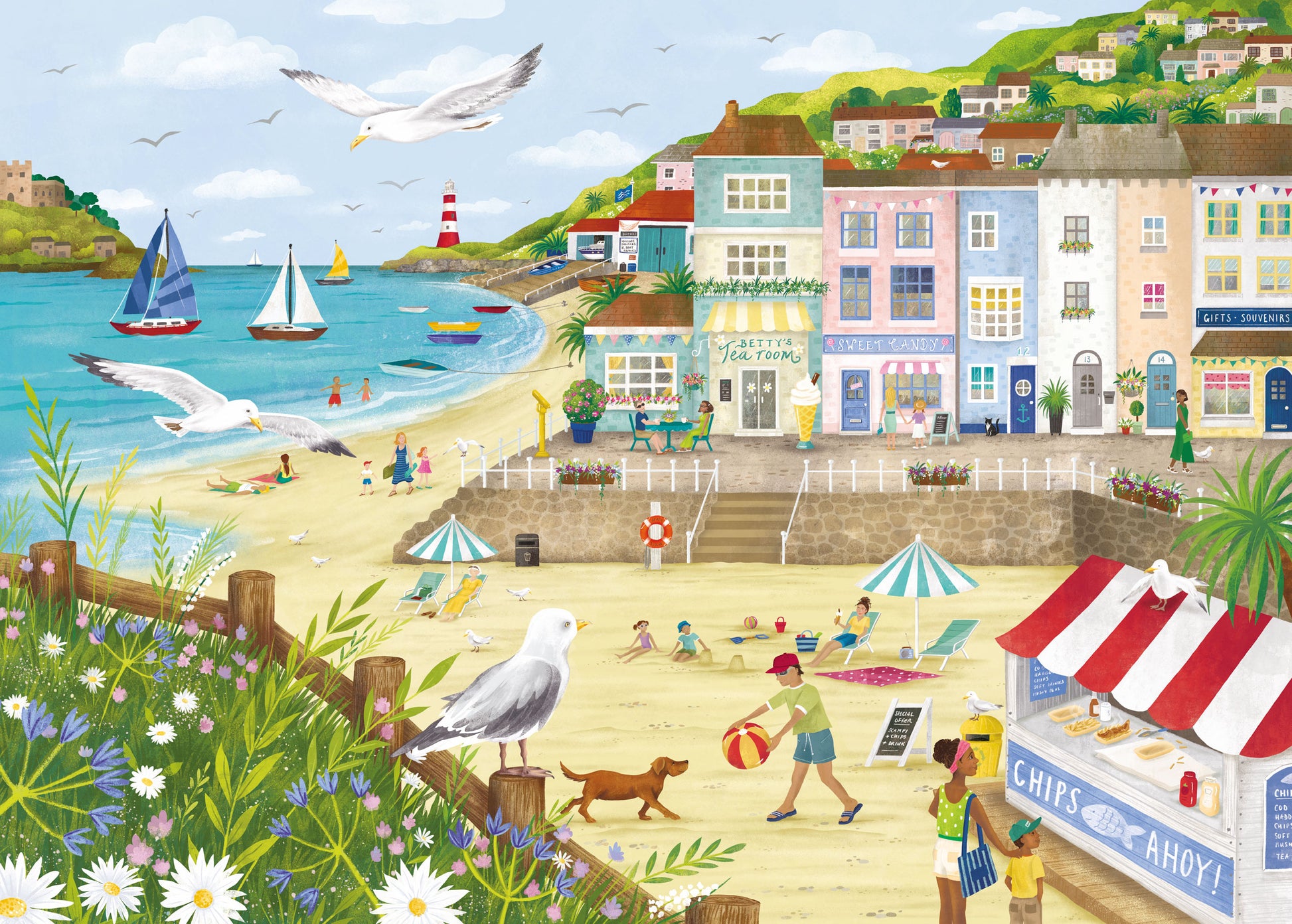 - Design: Seagull, Bird, Dog, Beach, Seaside, Sea, Floral, Flower
